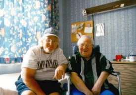 Someone complained that I was not in any photos .....so here is my dad Leland and I the day after the Reunion at the nursing home. Ps.. ..I got a haircut. |