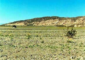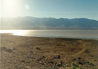 | Death Valley March 1997 During El Nino Yellow Flowers And Grass Growing Up Toward The North Pass | The Lake In Death Valley Was Over 50 Miles Long |